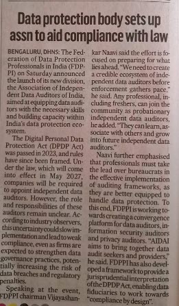 We are creating a separate Certification program called CIDA (Certified Independent Data Auditors), Creating a platform for exchange of Data Audit related services, Developing an all India network of FDPPI study Centers and other activities to promote DPDPA Compliance across the country.