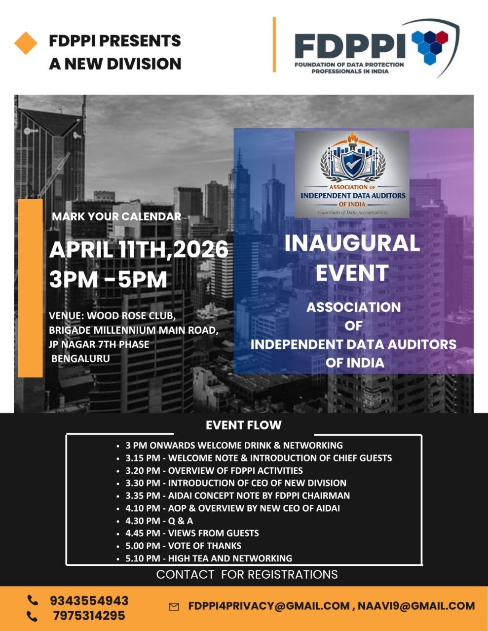 The Association of Independent Data Auditors of India (AIDAI) was launched in Bengaluru on 11th April 2026 at WoodRose Club, JP Nagar, Bengaluru, 2026.